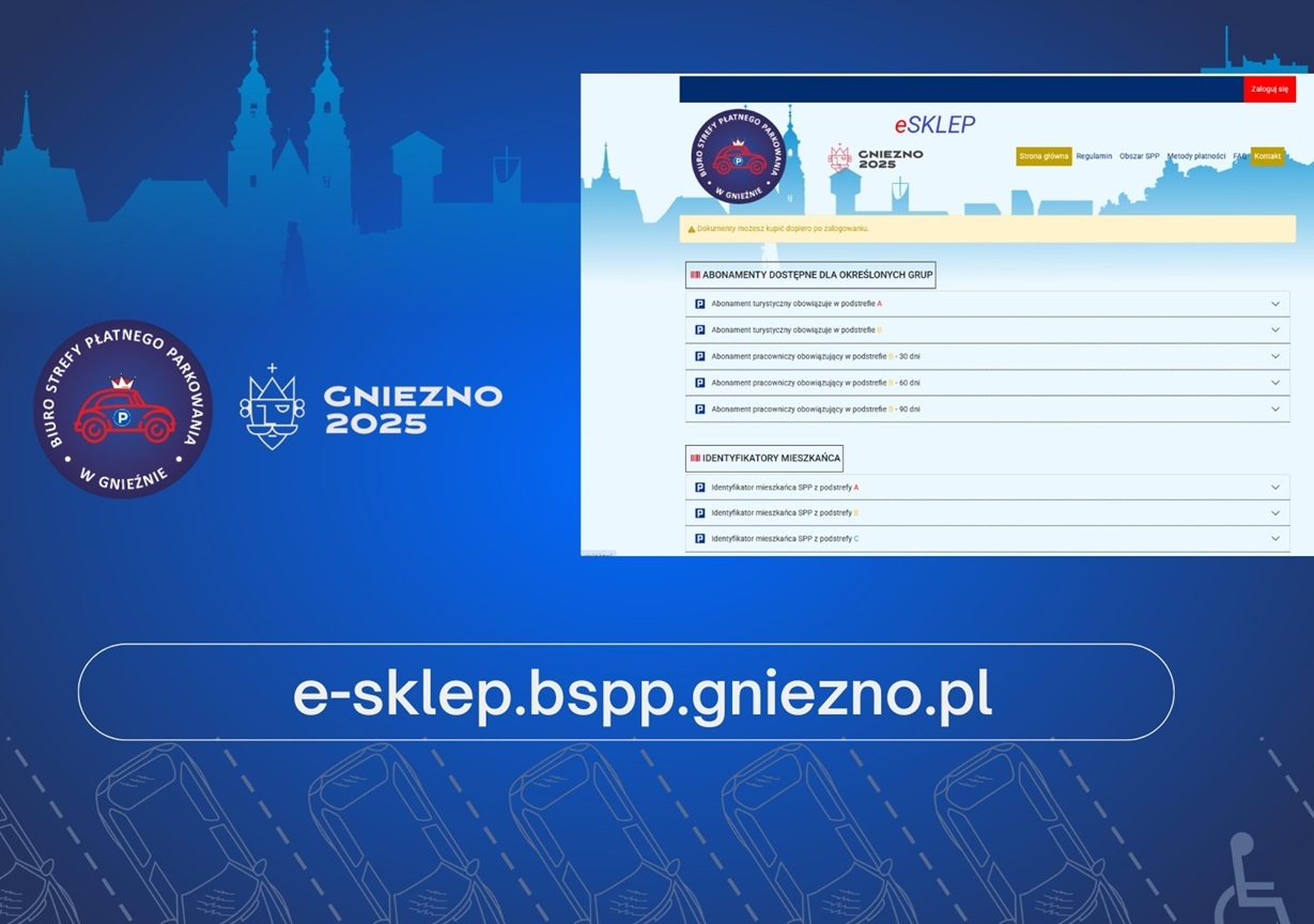 Od 1 kwietnia 2025 r. zakup abonamentów i identyfikatorów w Strefie Płatnego Parkowania w Gnieźnie będzie możliwy za pośrednictwem platformy sklepu internetowego pod adresem: www.e-sklep.bspp.gniezno.pl Dotychczas wykupienie identyfikatora mieszkańca lub abonamentu wiązało